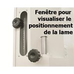 Volant en fonte massive plaqués chrome pour l'ajustement de la tension de la lame.  Une règle permet à l'opérateur de bien ajuster la tension par rapport à la largeur de lame utilisée.